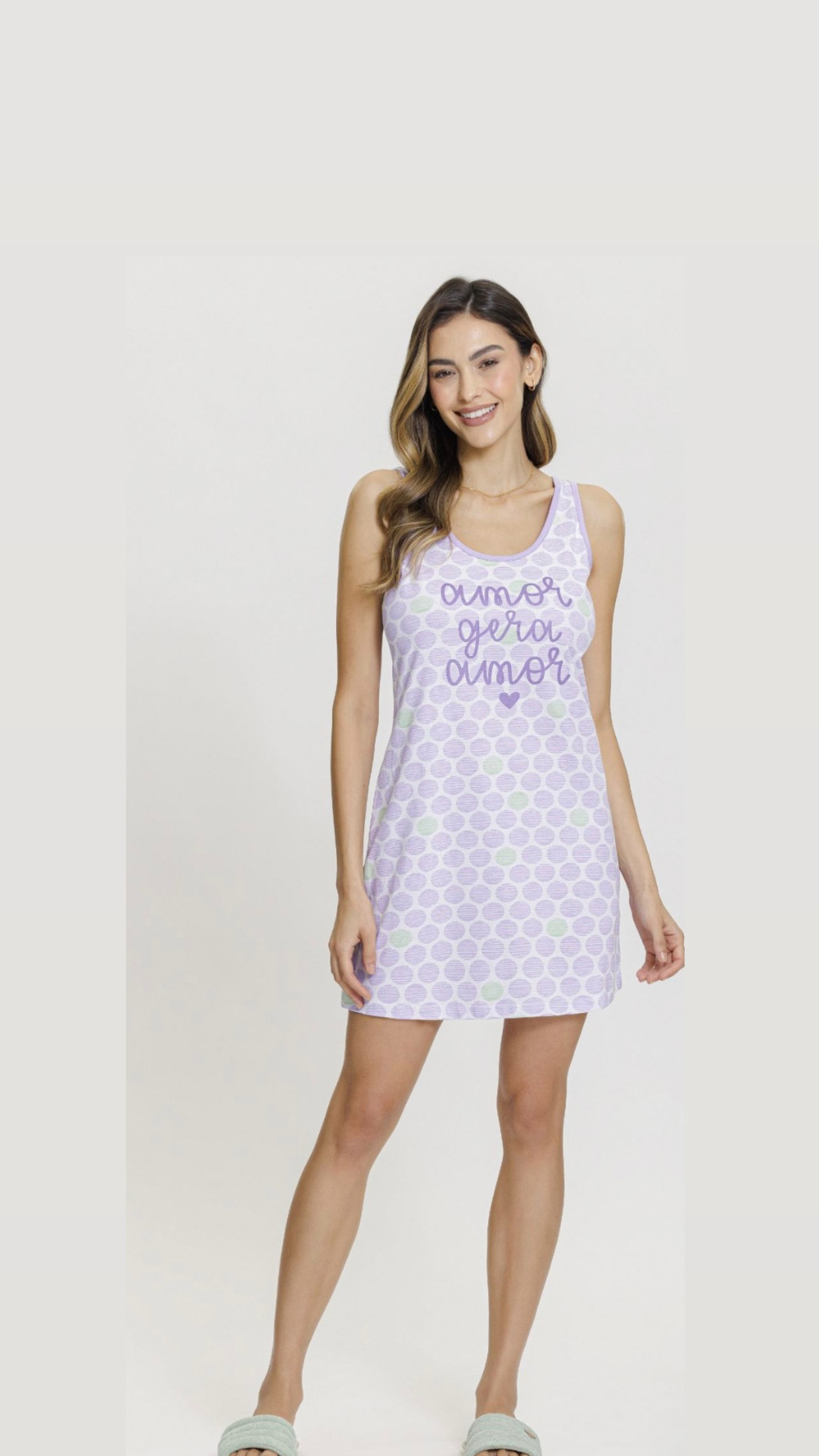 Envolva-se em um abraço de amor e felicidade com esta camisola! Confeccionada em tecido macio e respirável esta camisola te proporciona o conforto que você merece para noites relaxantes e revigorantes. A cor lilás traz um toque de delicadeza e feminilidade ao visual, enquanto a estampa de bolinhas clássica e a frase "Amor gera amor" te convidam a espalhar amor e positividade por onde você for